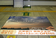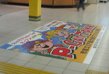 床シートとは、タイル、アスファルトに直接シートを貼り付けることが出来るメディアで、駅改札、店舗入口前、喫煙禁止など道路アスファルトに良く見かけます。