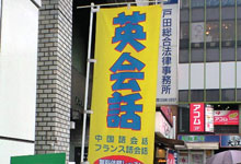 懸垂幕はビル、百貨店など高い建物に専用の装置を付けて掲出すし、商品、セールス、プロモーション、イベントの訴求に効果的な広告ツールです。